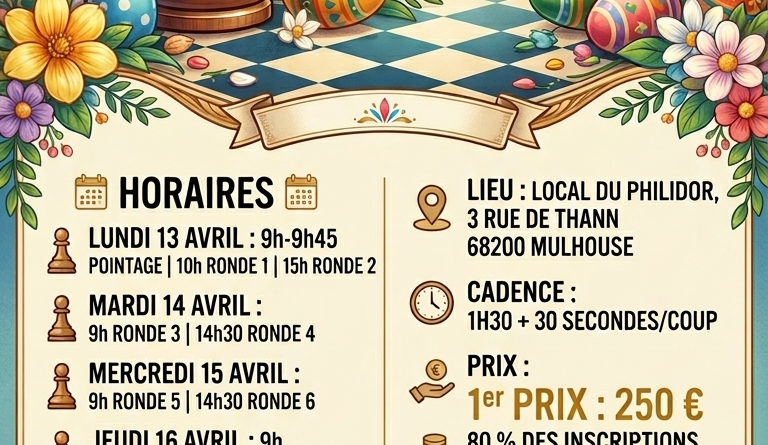 Read MoreLa semaine du 13 avril va être riche en événement échiquéen ! 1 tournoi FIDE et un blitz en attendant