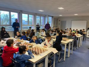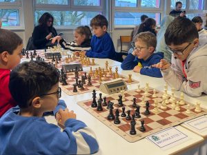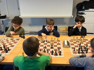 Au premier échiquier, Sacha Lanchec neutralise le toujours dangereux et imprévisible Timéo Schlienger. Emrys Rochdomine Elio Carnavali et réalise la belle perf du jour, Noa Soulas Biehler et Arthur Roch dominaient également leurs adversaires respectifs.