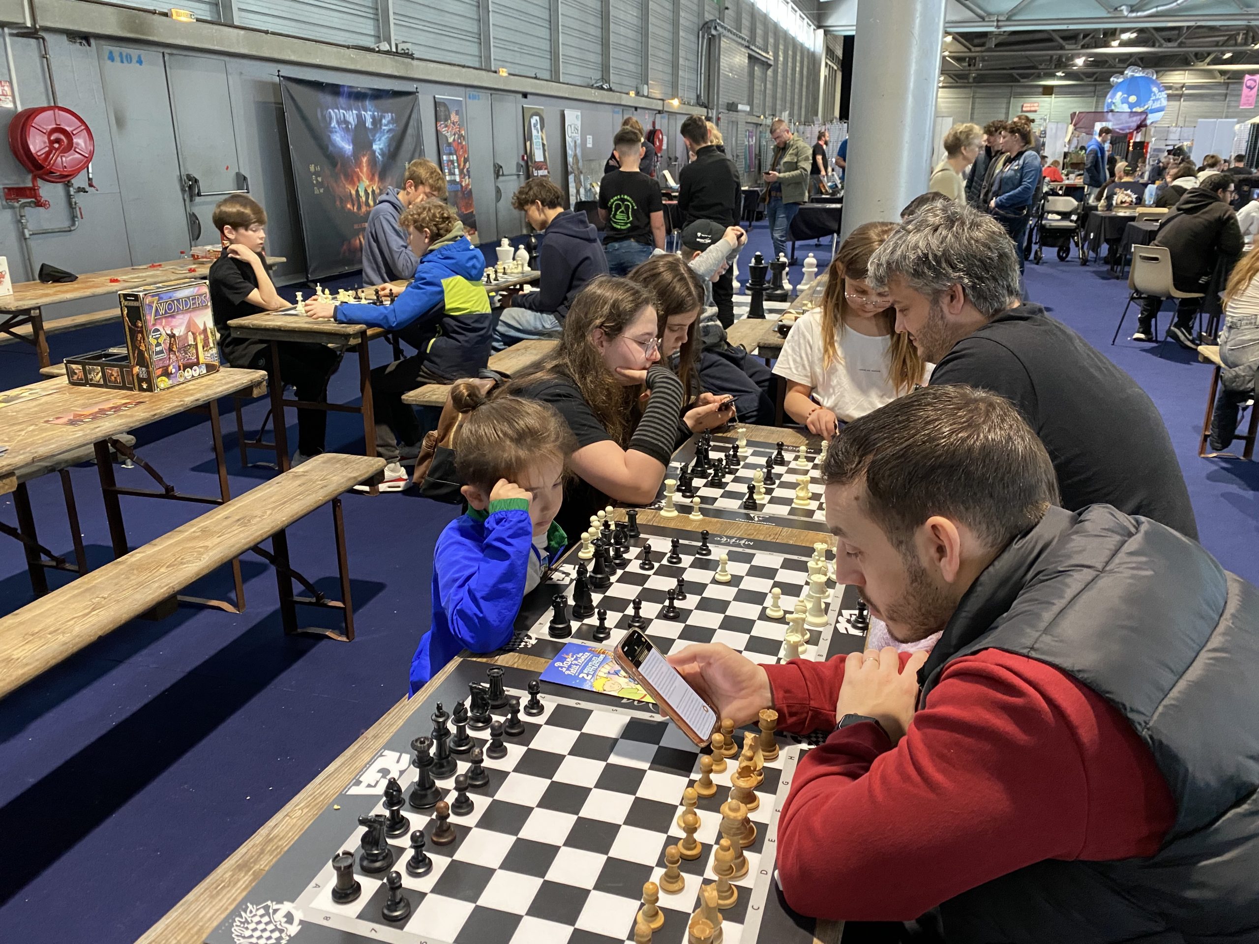 Evidemment, les échecs étaient présents grâce à David Dolui qui a assuré la permanence et l’animation au stand où étaient disposés les jeux ainsi qu’un échiquier géant. Et, comme d’habitude, le stand a remporté un vif succès, les parties s’enchaînaient et le stand n’a pas désempli !